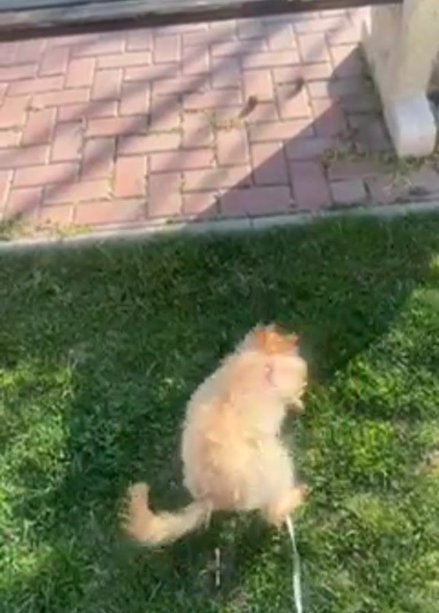 - "A tan-colored small dog is on a leash, rolling around on a patch of grass next to a brick walkway" by FM-qd3B12, licensed under CC BY 4.0