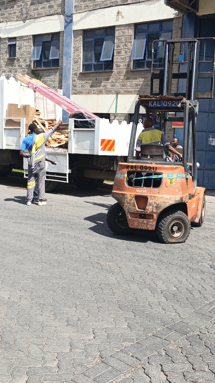 The image displays an outdoor loading operation in Nairobi, Kenya