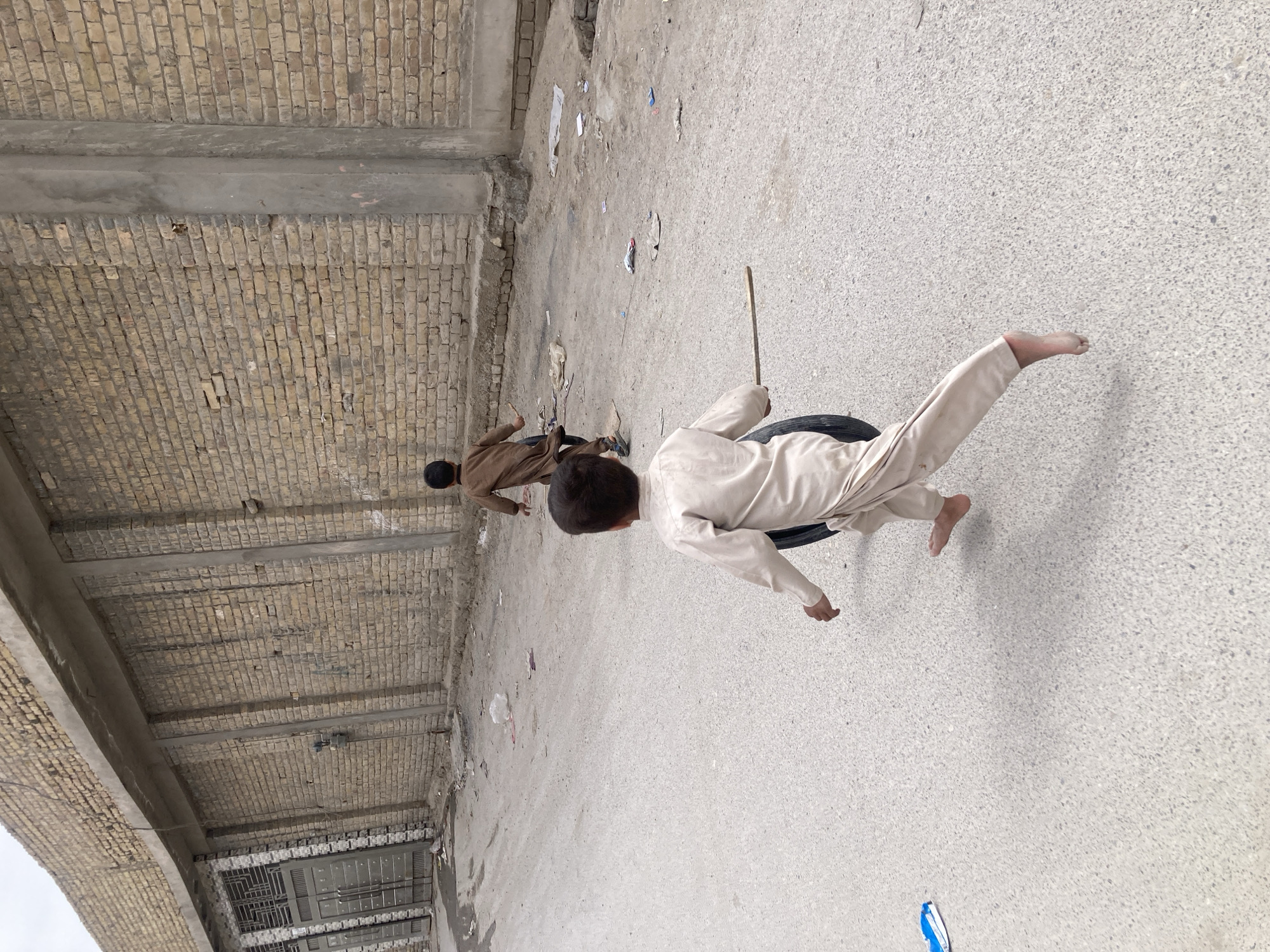 - "Two barefoot boys are playing in an urban environment in Quetta City Tehsil, Pakistan" by FM-7ELnX2, licensed under CC BY 4.0