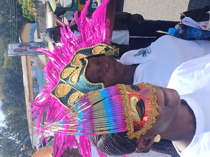 This image depicts a public street scene in Jos, Nigeria, likely during a celebratory event