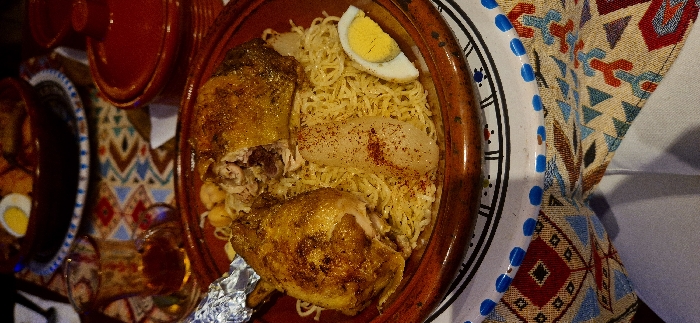 - "A plate of Moroccan chicken with seffa" by FM-DaNa73, licensed under CC BY 4.0