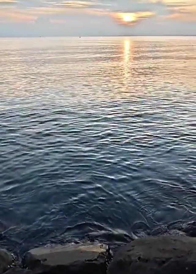 - "calm body of water, likely the ocean, with small waves gently lapping against some rocks at the bottom of the frame" by FM-he8AW2, licensed under CC BY 4.0