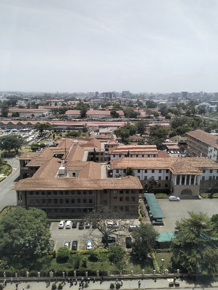 - "An aerial photograph presents a high-angle view of the Parliament Buildings in Nairobi, Kenya, under a clear, bright sky with slight atmospheric haze" by FM-aYTY32, licensed under CC BY 4.0