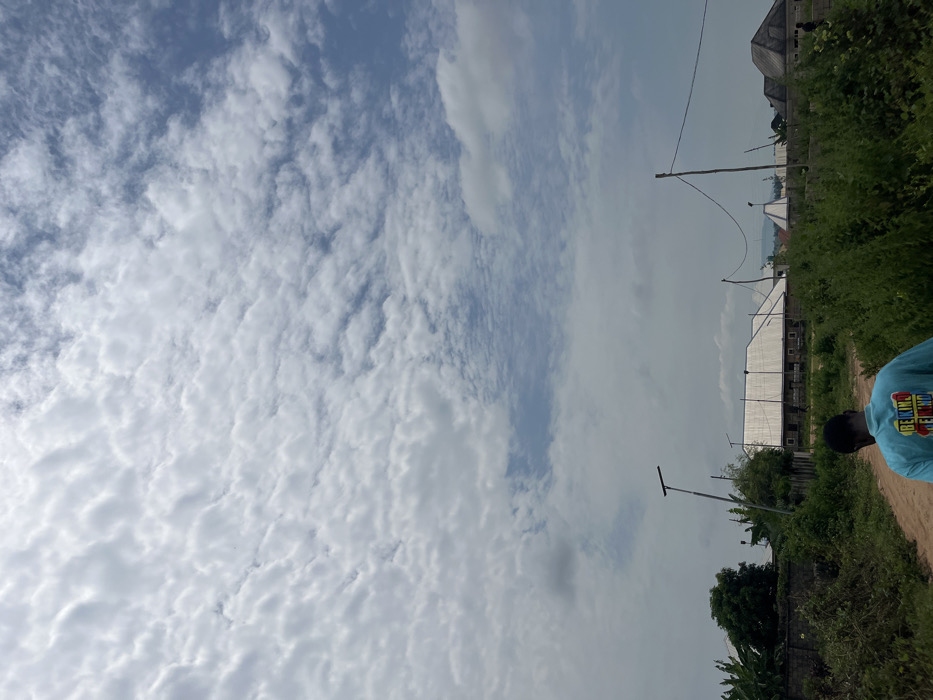 The image captures an outdoor scene in Gwagwalada, Nigeria, under a sky largely covered by altocumulus clouds with visible patches of blue