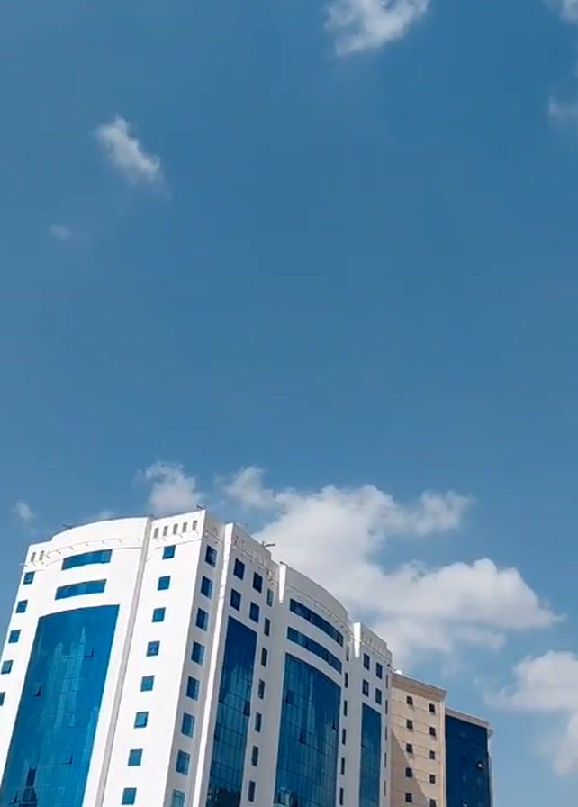 - "The video presents a low-angle view panning upwards along the side of a tall building, set against a backdrop of a clear blue sky dotted with white clouds" by FM-ttalh2, licensed under CC BY 4.0