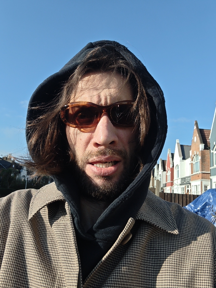 - "A male subject is depicted in a close-up, chest-up outdoor portrait against a residential street background under a clear blue sky in London, United Kingdom" by FM-XRse82, licensed under CC BY 4.0