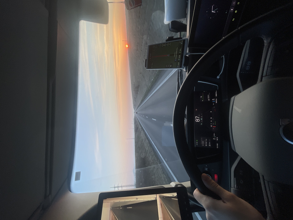 - "The image depicts the interior of a vehicle, specifically from the driver's perspective, traveling on a multi-lane highway at sunset in the vicinity of Luníkov, Czechia" by FM-aSc183, licensed under CC BY 4.0