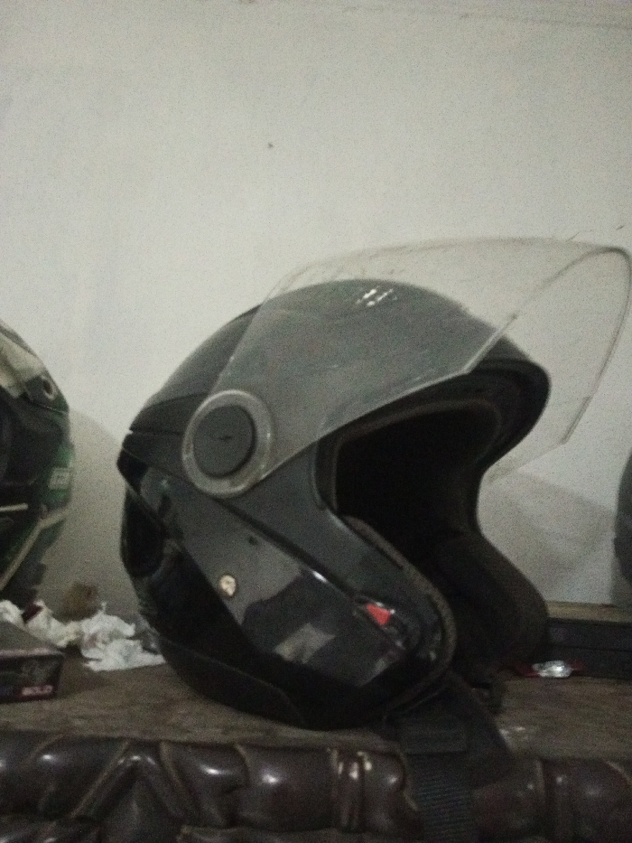 - "The scene depicts two motorcycle helmets positioned on a dark, textured surface, likely indoors against a light-colored, textured wall in the city of B" by FM-sn0nD3, licensed under CC BY 4.0
