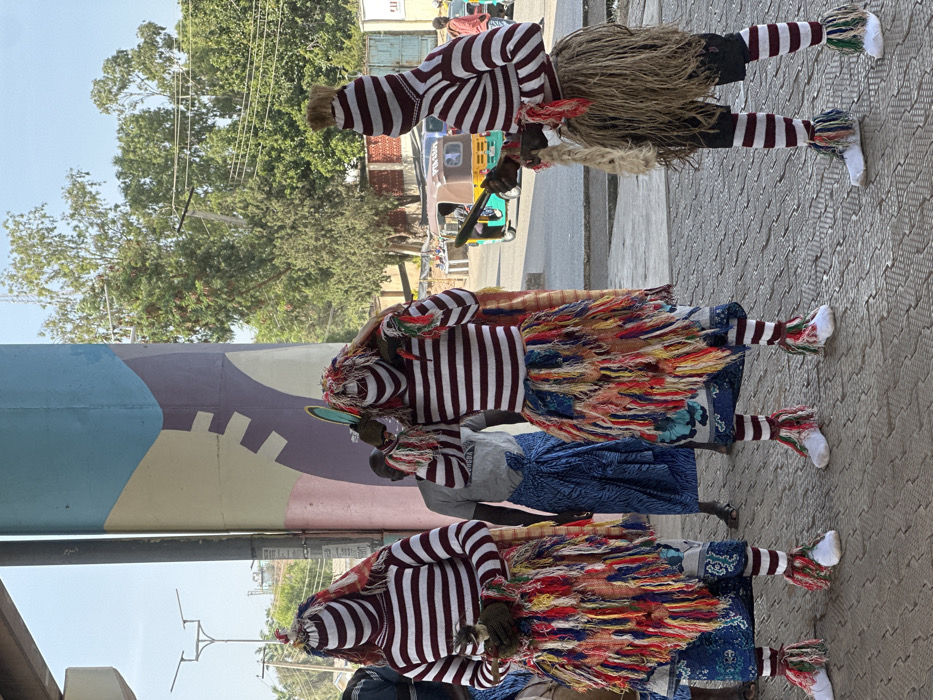 - "Three individuals, appearing to be masqueraders, stand on a paved surface next to a road in the city of Jos, Nigeria" by FM-zPNLo1, licensed under CC BY 4.0