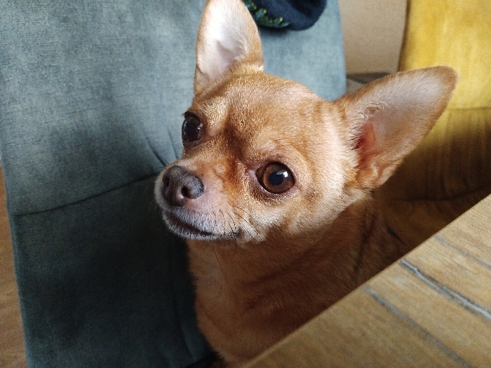 - "A light brown (tan) Chihuahua-type dog is depicted in a medium-close-up, positioned indoors in Nova Zagora, Bulgaria" by FM-9ghlT2, licensed under CC BY 4.0