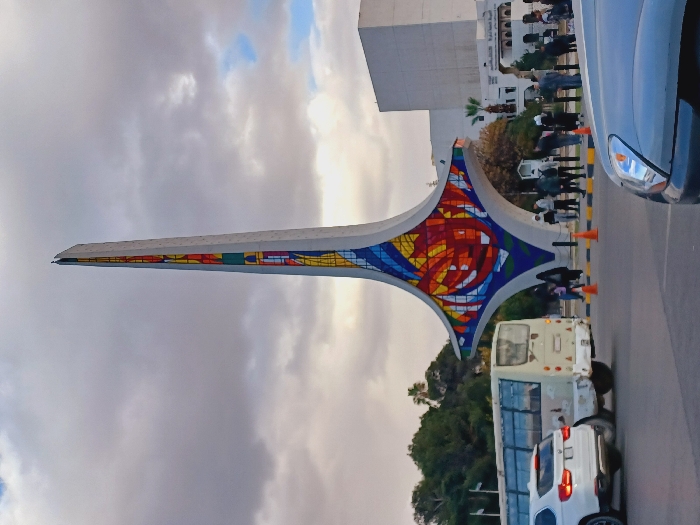 - "The image displays a street-level scene in Al-Qanawat Municipality, Syria, featuring a prominent modern monument under a partly cloudy sky" by FM-hmmxi2, licensed under CC BY 4.0