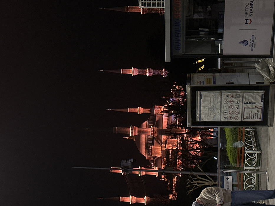 - "The image displays a nighttime scene in Istanbul, Turkey, featuring the Sultan Ahmed Mosque (Blue Mosque) illuminated in a warm orange light" by FM-nWB3x2, licensed under CC BY 4.0