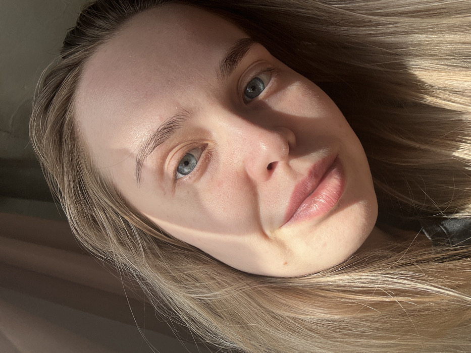 - "A close-up portrait shows a young adult female with blonde hair and blue eyes, illuminated by natural sunlight that creates distinct highlights and shadows across her face" by FM-yfHk32, licensed under CC BY 4.0