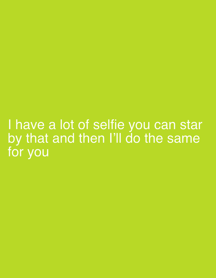 A lime green background displays the text "I have a lot of selfie you can star by that and then I'll do the same for you