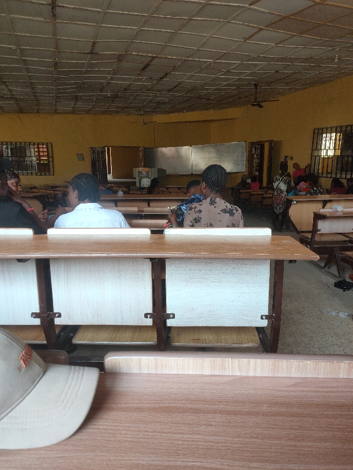 This image captures the interior of a room, likely a classroom or lecture hall, located in Isieke, Nigeria