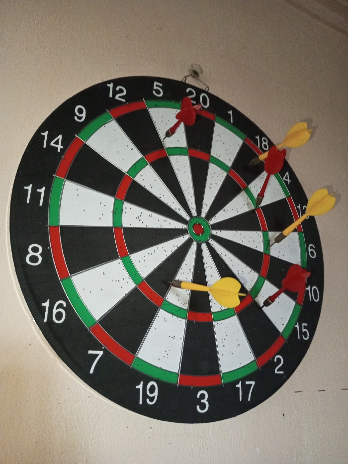 - "A dartboard hangs on a light-colored wall" by FM-ebj3u2, licensed under CC BY 4.0