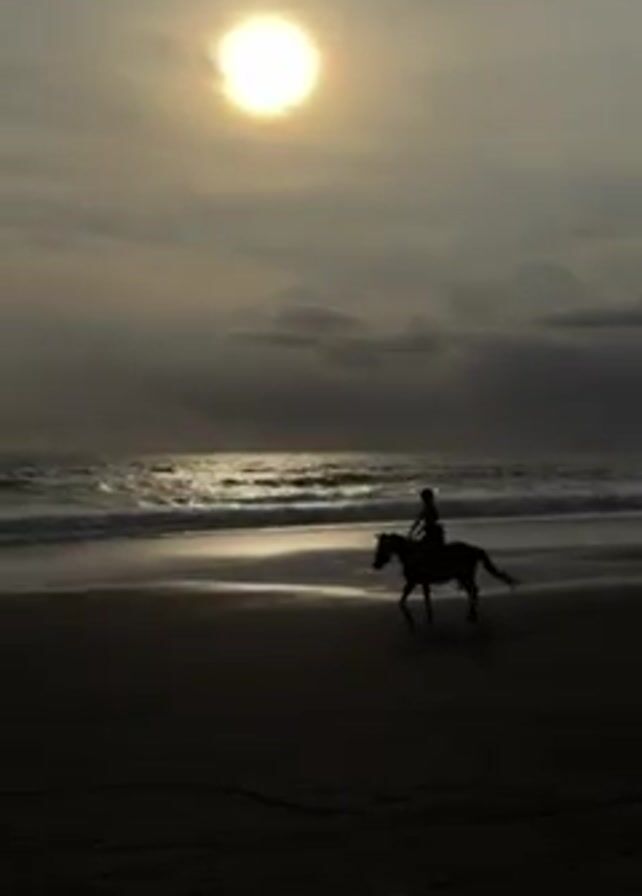 - "silhouetted figure riding a horse on a sandy beach at sunset" by FM-kNLQJ2, licensed under CC BY 4.0