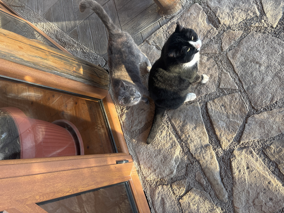 - "This image, captured in Donji Štoj, Montenegro, displays two domestic cats on an outdoor stone-paved surface" by FM-CAOHw1, licensed under CC BY 4.0