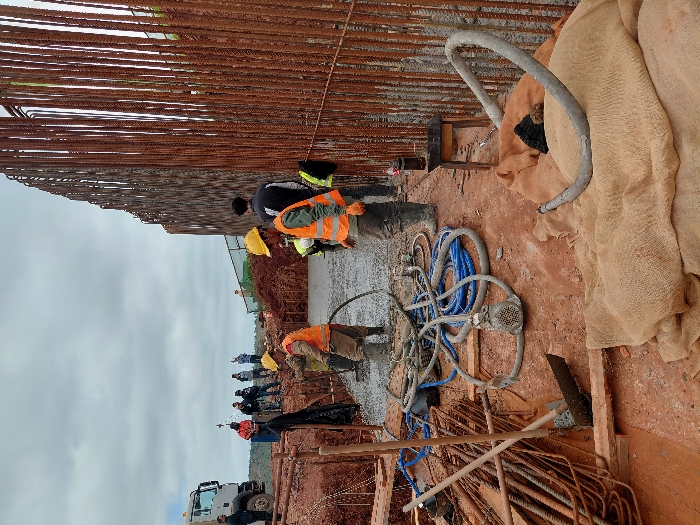 This image captures a construction site in Fdalate, Morocco, under an overcast sky
