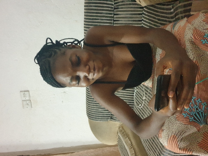 A young adult female is depicted seated indoors in Kabong, Nigeria