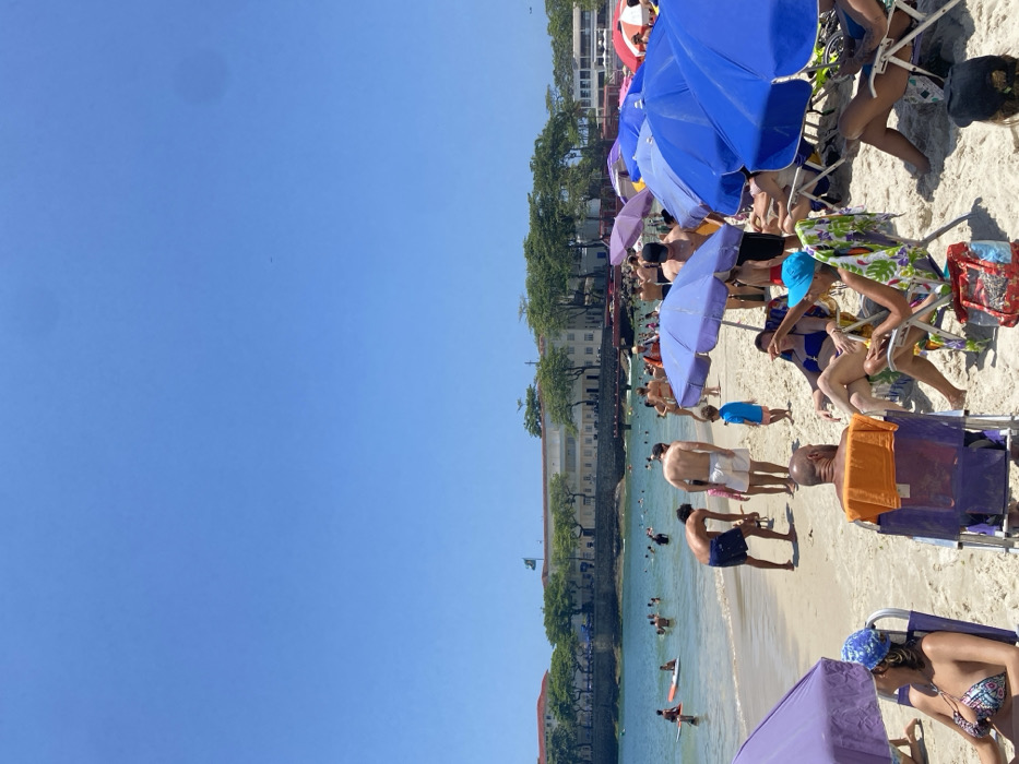 - "This image depicts a crowded beach scene at Praia Vermelha in the Urca neighborhood of Rio de Janeiro, Brazil, under a clear, bright blue sky" by FM-T4gP12, licensed under CC BY 4.0
