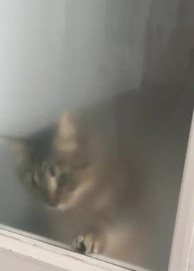 - "A cat is pressing its paws against a frosted glass door or window" by FM-Gp7zE3, licensed under CC BY 4.0