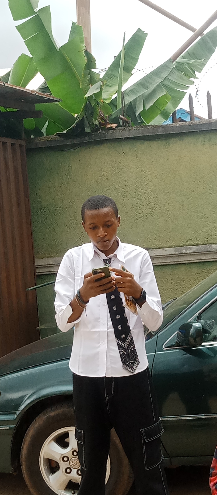 - "A young individual, appearing male, with short dark hair, is depicted in a vertical, waist-up shot outdoors in Onitsha, Nigeria" by FM-UOwbw1, licensed under CC BY 4.0