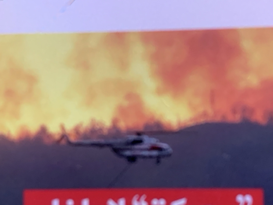 - "The image depicts an aerial view of a large fire with a helicopter in the foreground, against a backdrop attributed to Al-Muhajerin Municipality, Syria" by FM-q7EDs2, licensed under CC BY 4.0