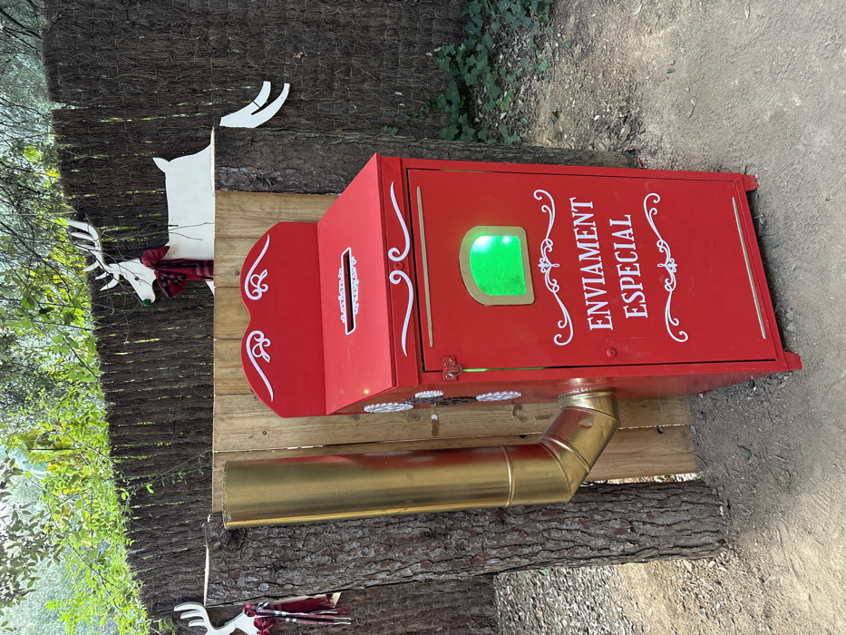 The image captures an outdoor Christmas letter collection point located in Castellar del Vallès, Spain