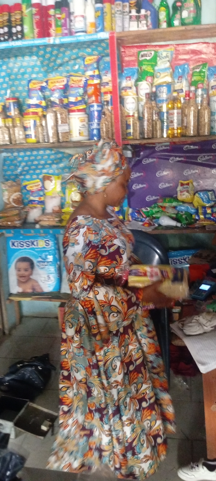 The image captures the interior of a retail shop in Kwachiri, Nigeria