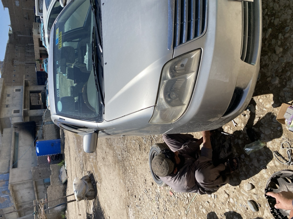 The image depicts an outdoor automotive repair scene in کوکران, Afghanistan, on a sunny day
