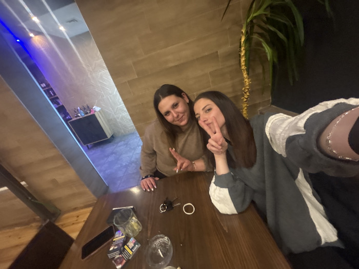 - "Two adult females are seated at a dark wooden table within an indoor establishment in Sandanski, Bulgaria, consistent with a cafe or bar setting" by FM-G2avR2, licensed under CC BY 4.0