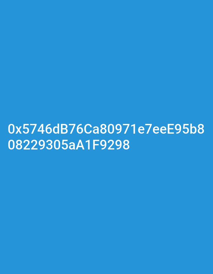 The image displays a solid cerulean blue background. Centered on the lower half of the frame are two lines of white alphanumeric text. The first line reads "0x5746dB76Ca80971e7eeE95b8". The second line reads "08229305aaA1F9298". No individuals, other subjects, objects, actions, or specific environmental features are depicted. The image does not contain any visual or textual information indicating a location in Klerksdorp, South Africa, or any other specific geographical area.