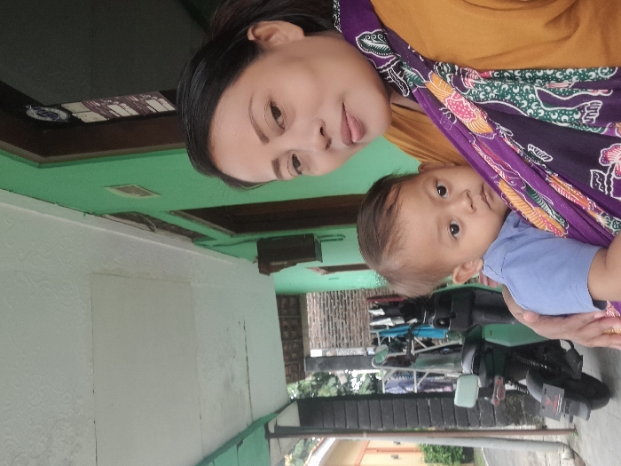 - "An adult female is depicted holding an infant in an outdoor setting in Kecamatan Pati, Indonesia, likely on a covered patio or porch" by FM-p15wb2, licensed under CC BY 4.0
