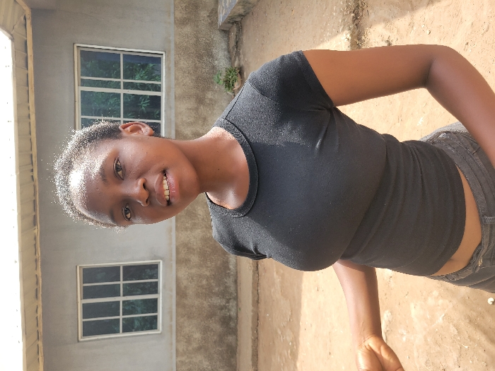 The image depicts a young adult female standing outdoors in Markurdi, Nigeria