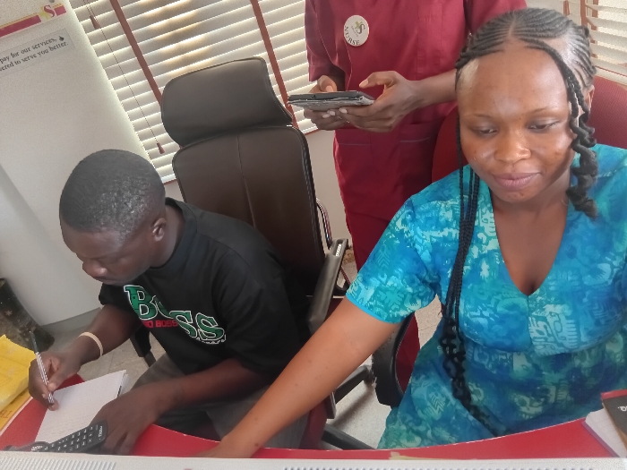 The scene is set indoors, likely an office or medical facility, within the city of Lokoja, Nigeria