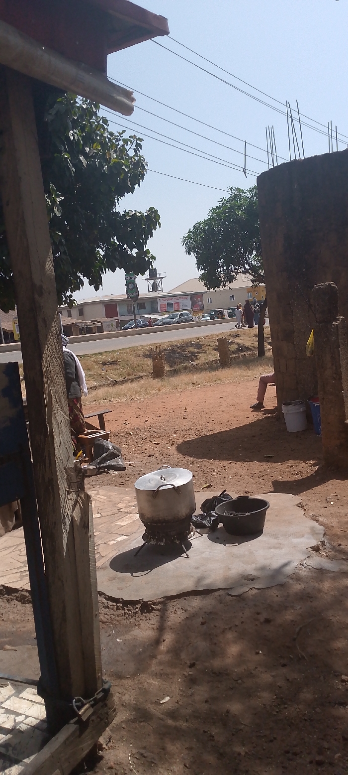 The image captures an outdoor scene in Jos, Nigeria, viewed from a slightly elevated position