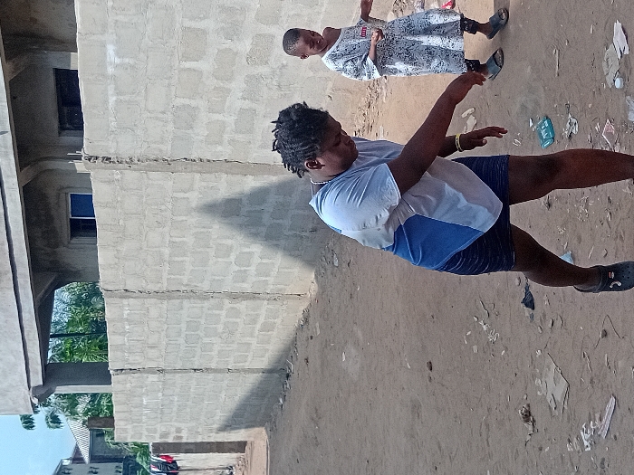 The image depicts a daytime scene on a dirt path in Ifite Awka, Nigeria