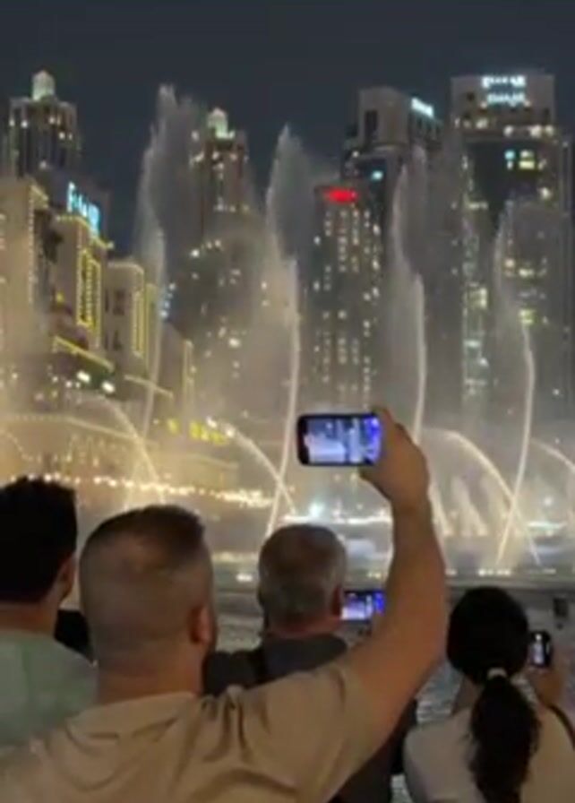 - "A group of people stand near water’s edge at night, filming a large fountain show in front of a cluster of tall buildings" by FM-m9oJn2, licensed under CC BY 4.0