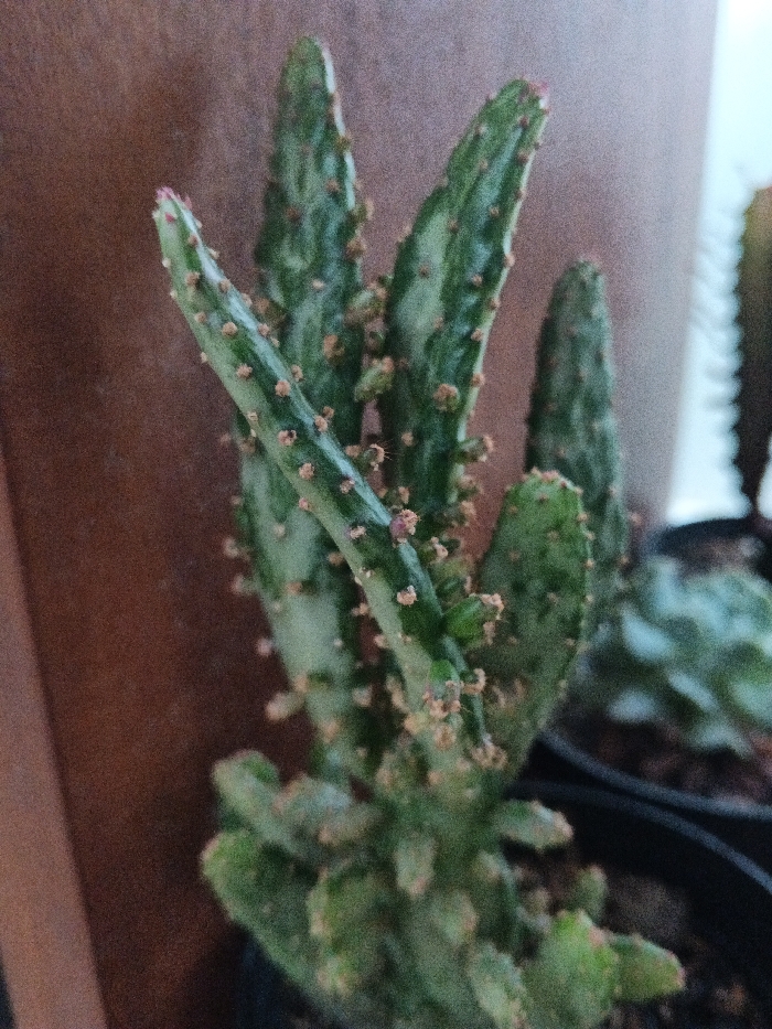 - "A green cactus with mottled white patterns stands prominently in a black pot" by FM-UoBXu2, licensed under CC BY 4.0