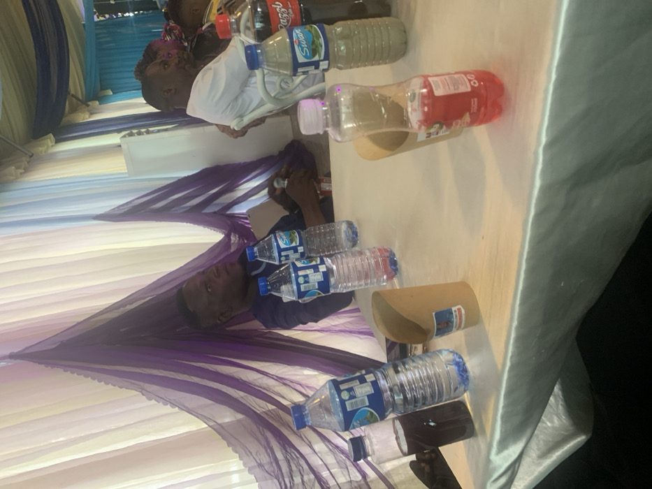 The image depicts an indoor gathering in Bukuru, Nigeria