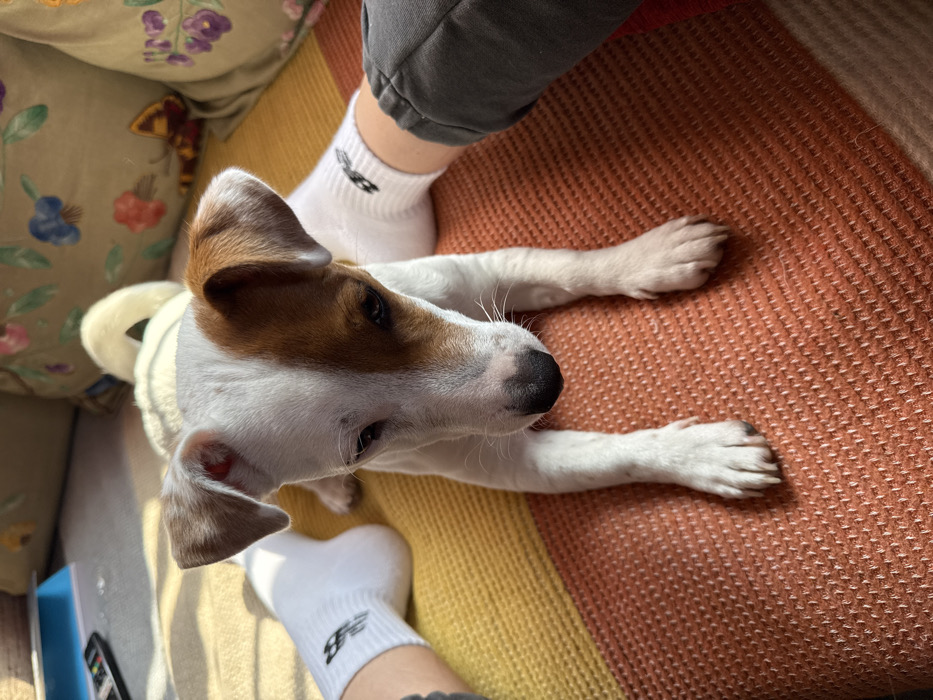 - "A small domestic canine, consistent with a Jack Russell Terrier breed, is centrally positioned on a patterned, woven textile surface in Galabovtsi, Bulgaria" by FM-fASGr2, licensed under CC BY 4.0