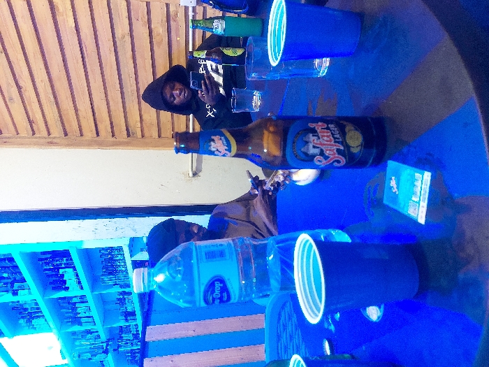 The image depicts an indoor scene within a bar or lounge located in Iringa, Tanzania