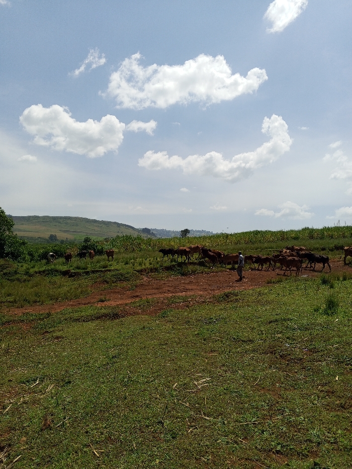 - "The image displays an outdoor rural landscape in Borabu Chitago ward, Kenya, under a clear blue sky with scattered white cumulus clouds" by FM-ybuqj2, licensed under CC BY 4.0