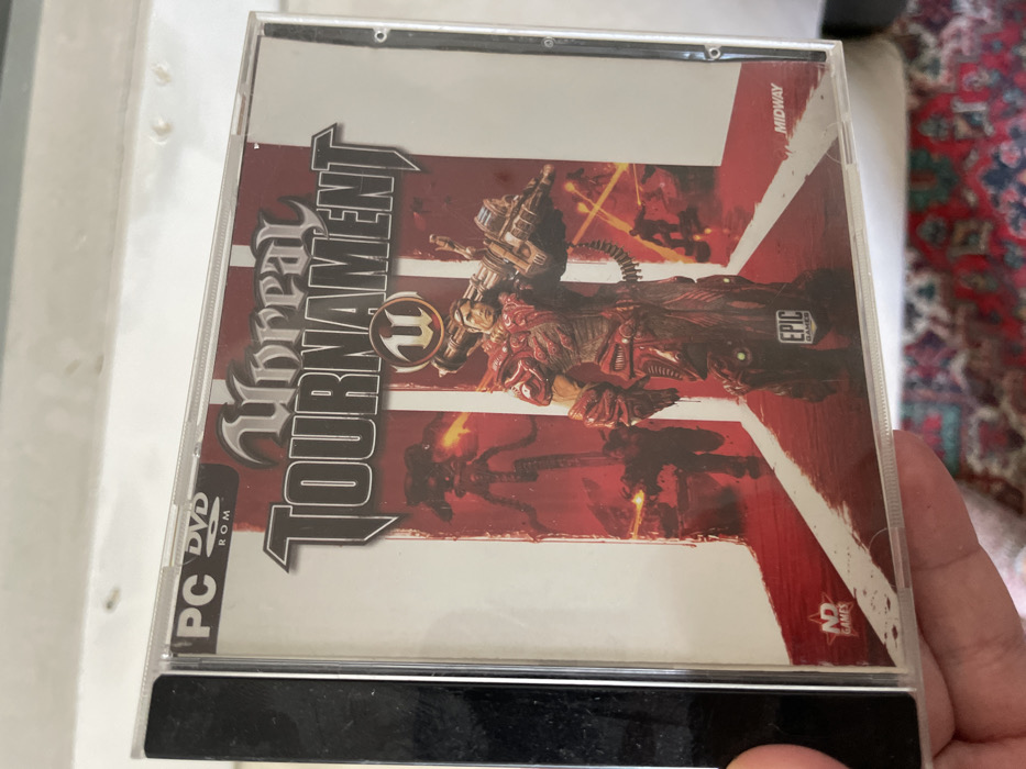- "A clear plastic PC DVD ROM game case for "Unreal Tournament 3" is held by a human hand, observed from a slightly elevated and angled perspective" by FM-YbcwF3, licensed under CC BY 4.0