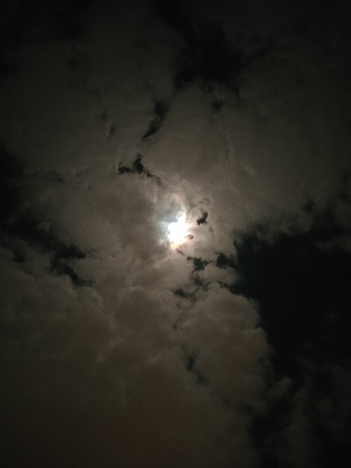 - "A night scene reveals a glowing orb, likely the moon or sun, obscured by layers of dark, ominous clouds" by FM-tMAHv2, licensed under CC BY 4.0