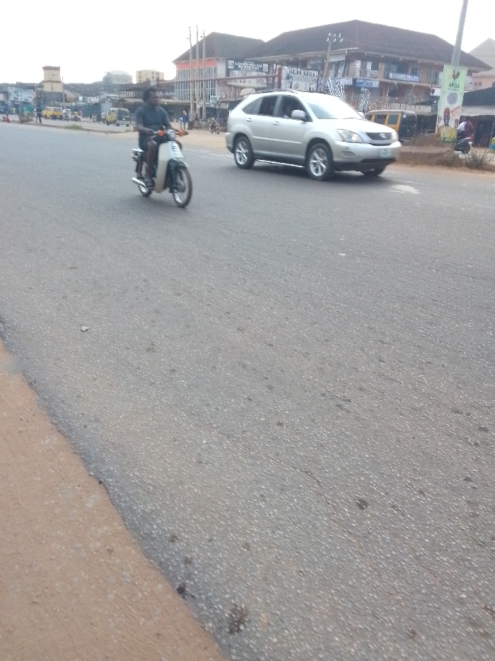 The image depicts a daytime street scene in the city of Nkpor, Nigeria