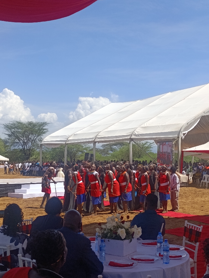 - "This image depicts an outdoor cultural gathering or ceremony in Marigat, Kenya, characterized by a large white canopy tent structure providing shade" by FM-BGGAG2, licensed under CC BY 4.0