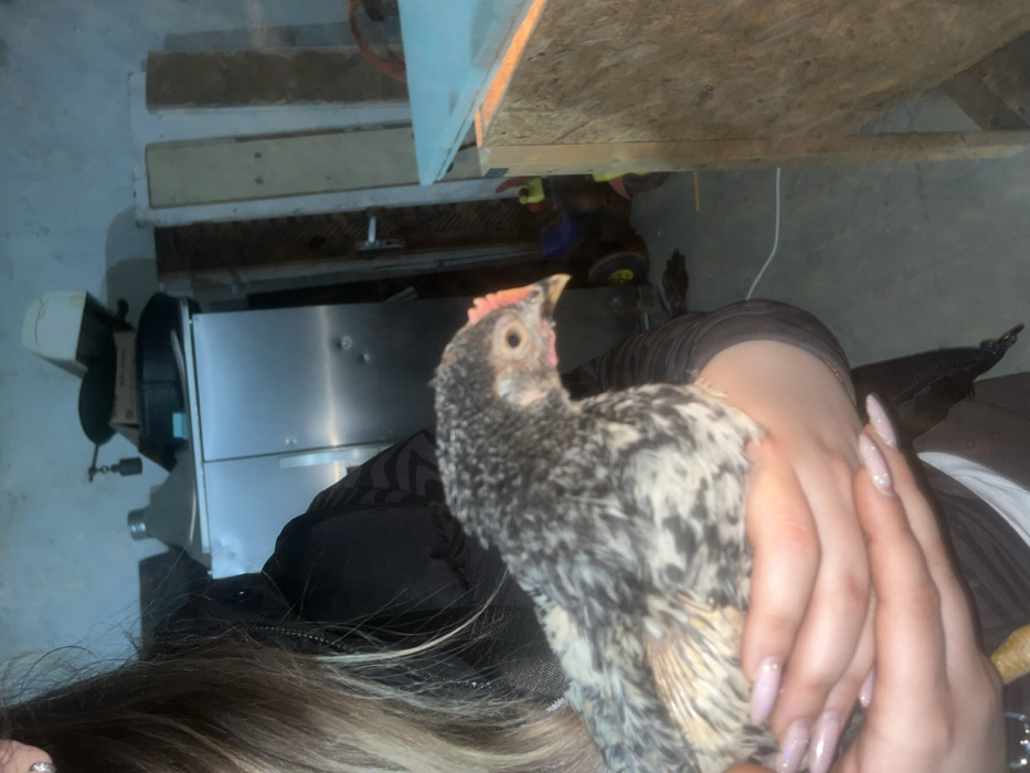 - "The image displays an individual holding a juvenile speckled chicken in an indoor setting located in Asenovgrad, Bulgaria" by FM-Wb4f32, licensed under CC BY 4.0