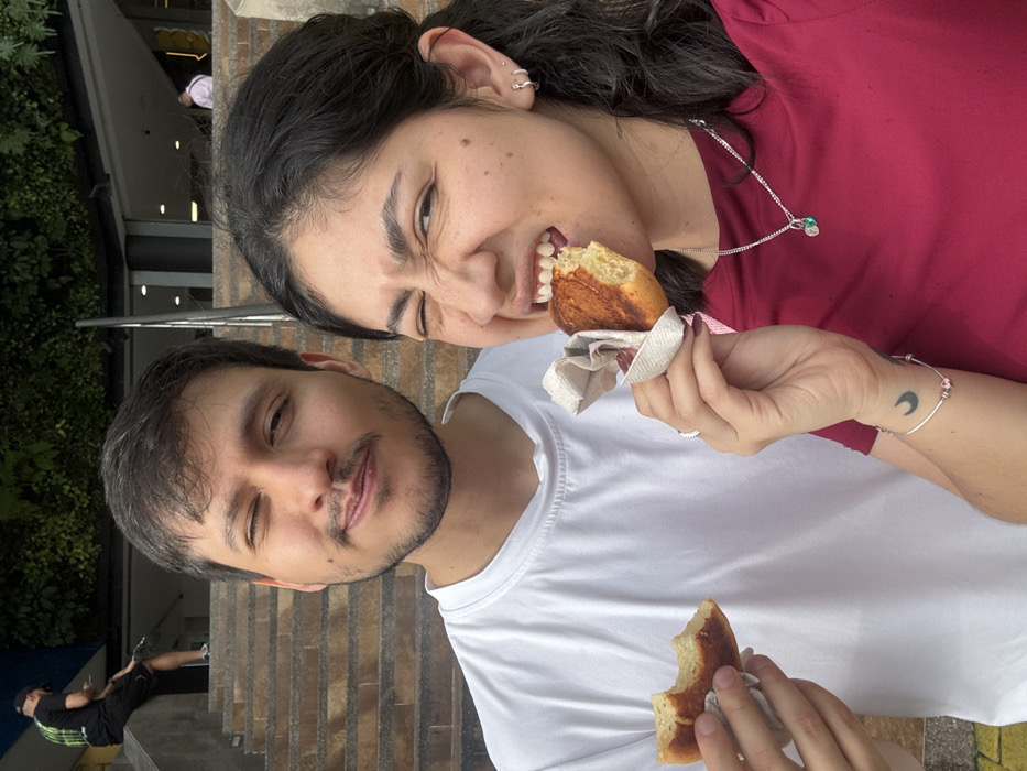 - "The image depicts two individuals in the foreground consuming baked goods, positioned outdoors on a staircase in Perimetro Urbano Pereira, Colombia" by FM-rSR2K3, licensed under CC BY 4.0